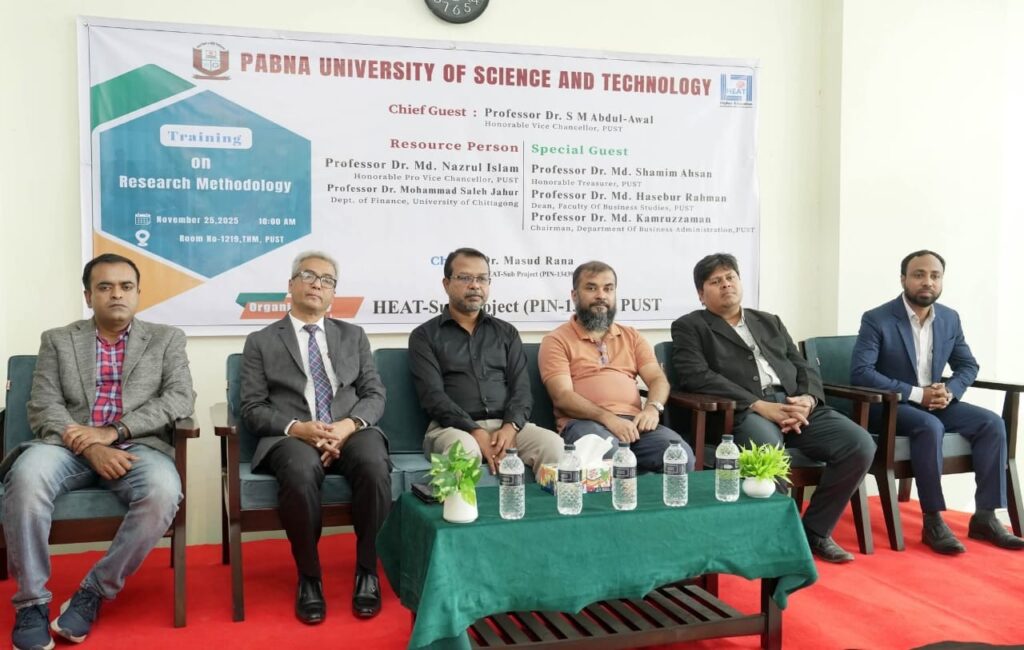 BDRunner, Nov 25: A training workshop was held on Tuesday at the initiative of the HIT-Sub Project of Pabna University of Science and Technology. The guests were the Deputy Vice-Chancellor, Professor Dr. Md Nazrul Islam, and Treasurer, Professor Dr. Md Shamim Ahsan. Other guests were the Dean of the Faculty of Business Studies, Professor Dr. Md Hasibur Rahman, and the Chairman of the Department of Business Administration, Professor Dr. Md Kamruzzaman.